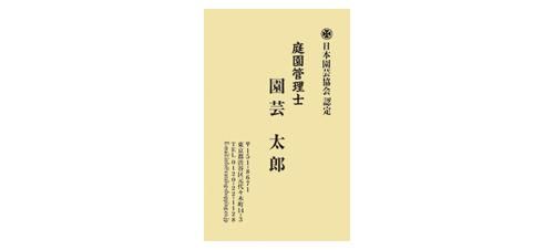 ▲営業活動に役立つ「庭園管理士」特製名刺100枚。